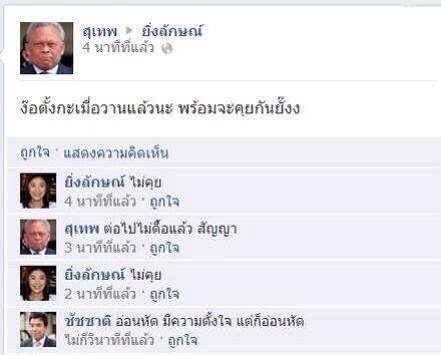 ด่วน! คุณสุเทพ เฟซบุ๊คไปง้อรักษาการณ์นายก คุณยิ่งลักษณ์แล้ว....