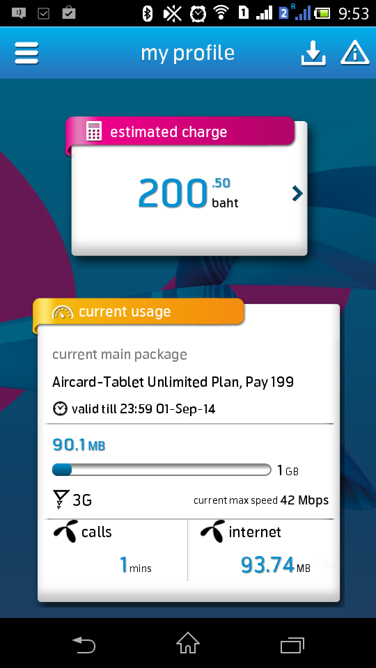 อ่าวไหงเล่นได้ 1G คือ package ผมต้องได้ 750 + เนตฟรี 6G พนักงานบอกว่าได้เดือนละ 1GB งั้นผมต้องใช้ได้ 1.75 GB แซะ หรือต่อให้ 6G 12 เดือนก็ได้เดือนละ 500 MB ต้องเป็น 1.25 GB แซะ แต่ไหงได้ G เดียว