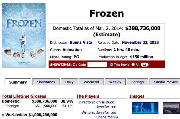 สุดสัปดาห์นี้ Frozen ทำเงินทั่วโลกผ่านพันล้านได้แล้ว ผ่านมาแบบเฉียดฉิวสุดๆอ่ะ