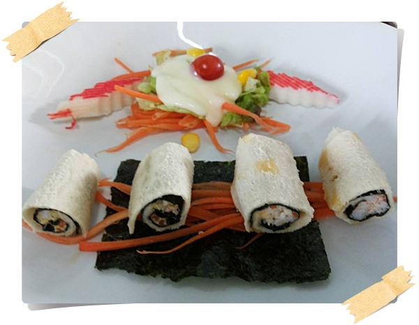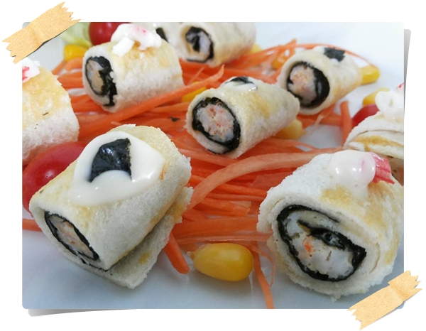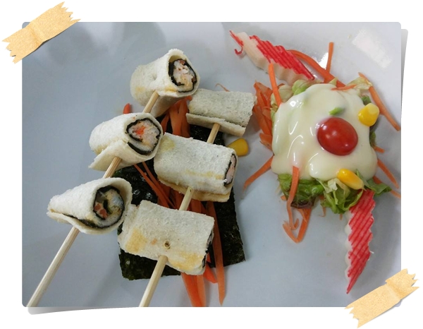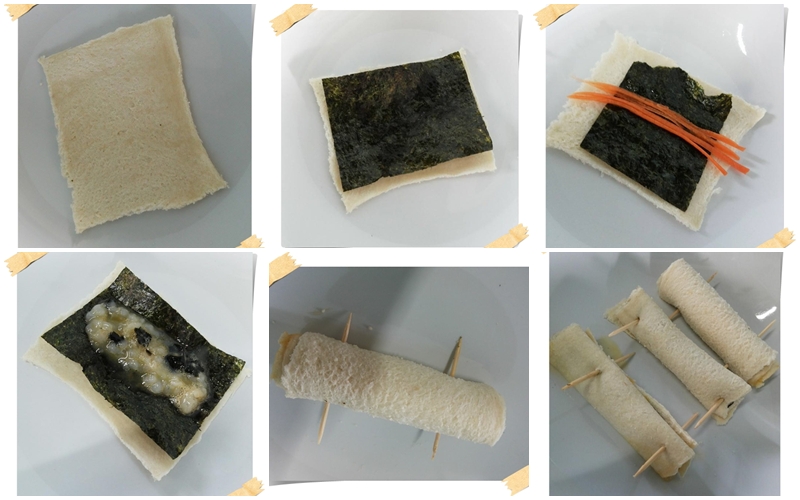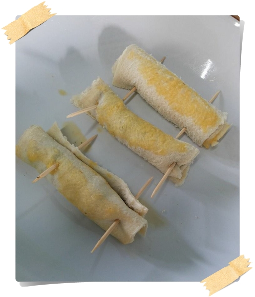 โชว์ไส้หน่อย จริงๆ ยุพิณอยากได้โรลใหญ่กว่านี้นะ แต่ขนมปังแผ่นมันเล็กห่อไม่หมด