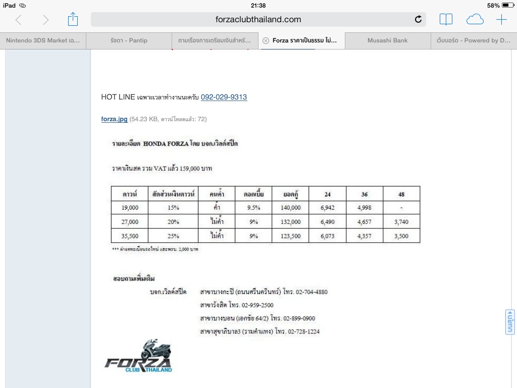 ถามเรื่องการเตรียมเงินสำหรับดาวน์ครับ แล้วราคาล่าสุด ของ forza 300 ครับ