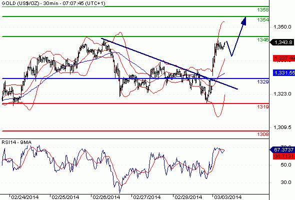 Our preference: Long positions above 1329 with targets @ 1346 & 1354 in extension.
