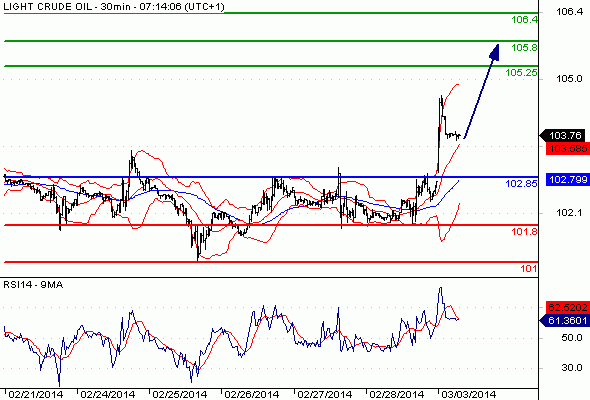 Our preference: Long positions above 102.85 with targets @ 105.25 & 105.8 in extension.