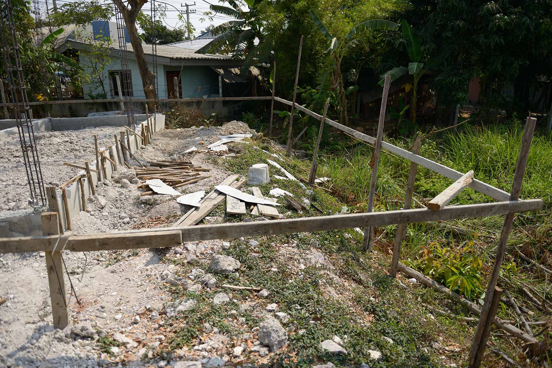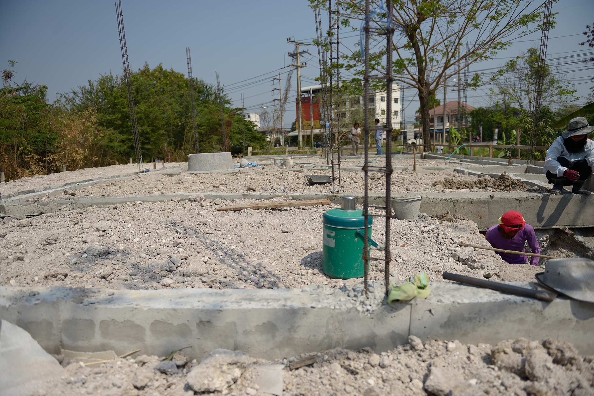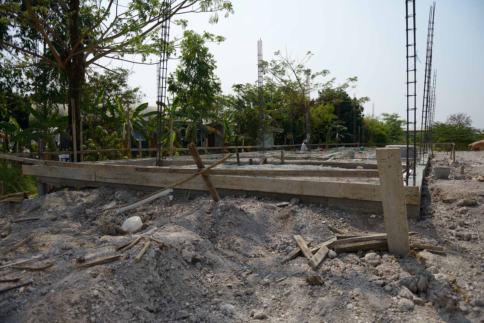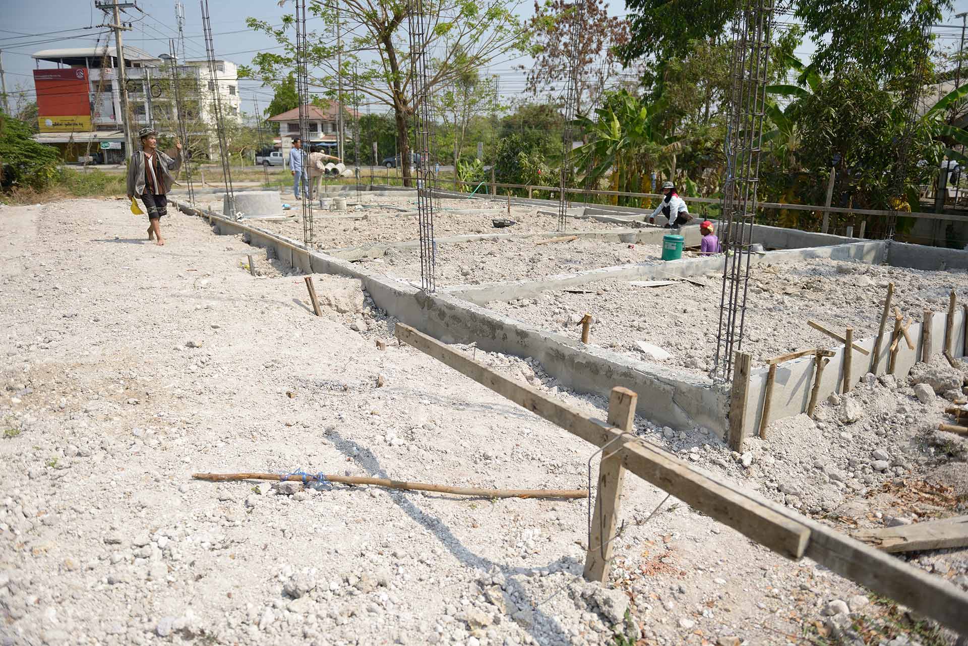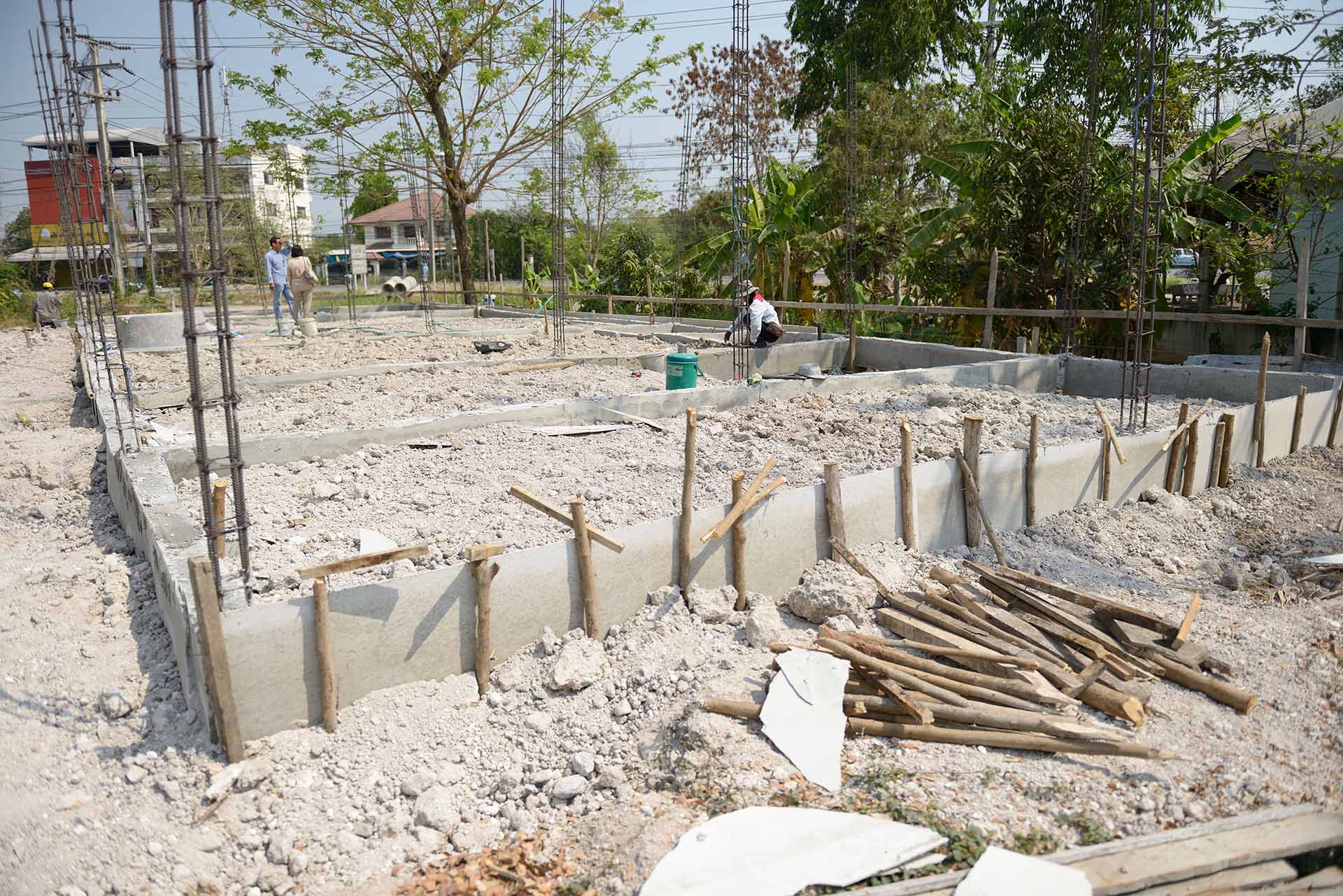 2.3.57 พี่แจ็ค เทตอม้อ(ฟุตติ้ง) ทำเสาฟุตติ้ง เทคาน (พี่แจ็คบอก ต้องเทคานก่อน ถึงจะตั้งเสารับหลังคาได้) ยังไม่เดินท่อน้ำ ยังไม่วางถังบำบัด งวดนี้ขอเบิกก่อน 100,000 จัดไปคร้าบบบ