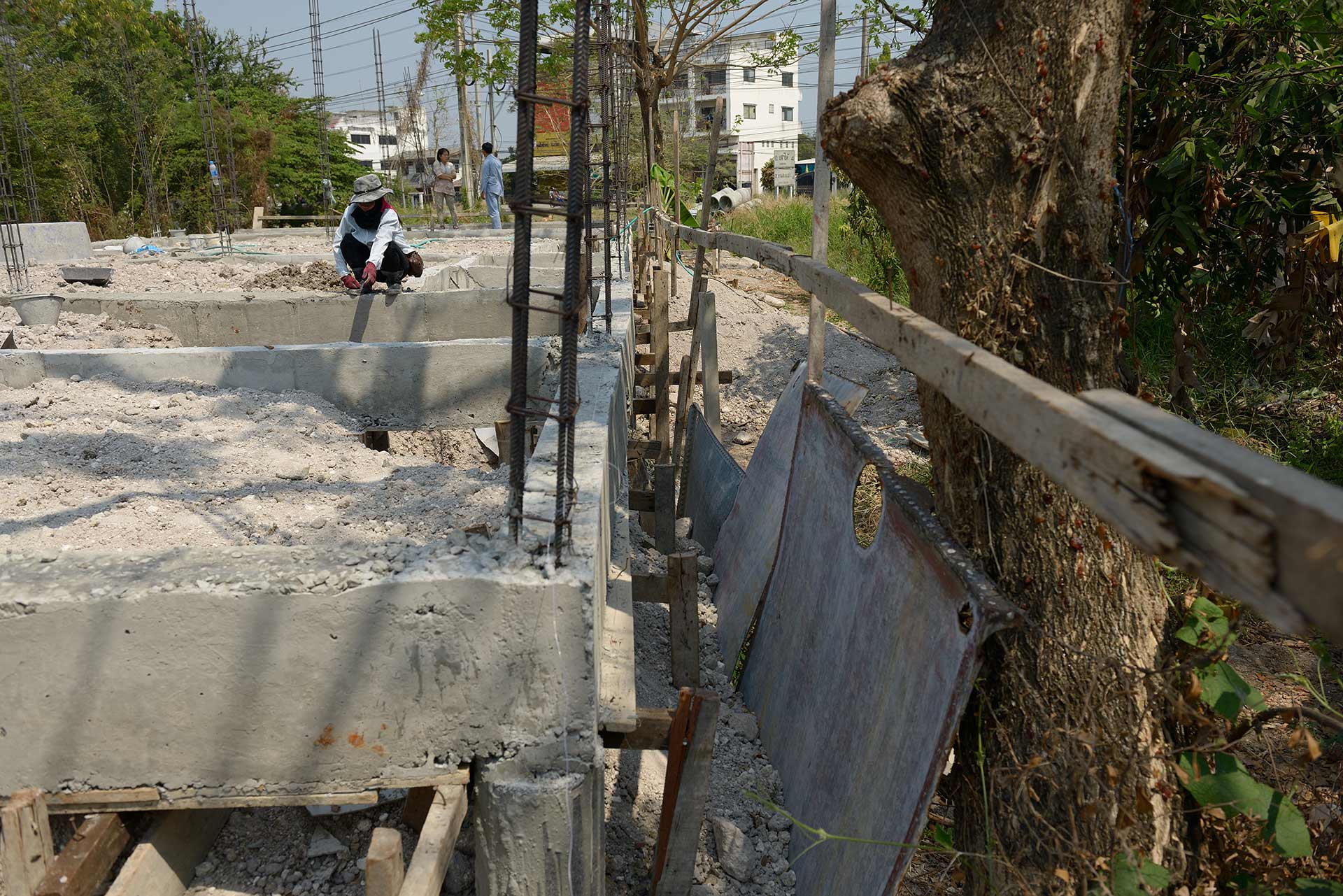 3. คานทำไมพี่เท ไม่เสมอกันพี่ พี่แจ็คบอก เดี๋ยวเทปูนทับอีกทีแล้วปรับระดับให้ได้ตามที่ เอ็นขึงไว้ คราวนี้จะเท่ากันหมดไม่ต้องห่วง