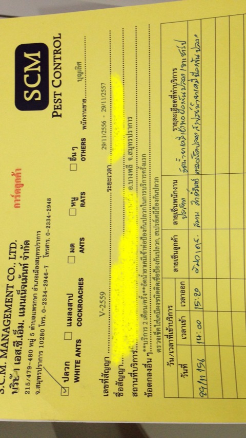 เพื่อนๆคะ ใครที่กำลังมองหาบริษัทรับฉีดปลวกแถวสมุทรปราการอยู่ อย่าไปเซ็นต์สัญญาใช้บริการกับเจ้านี้นะคะ บริษัท เอส ซี เอ็ม เมเนจเม้น