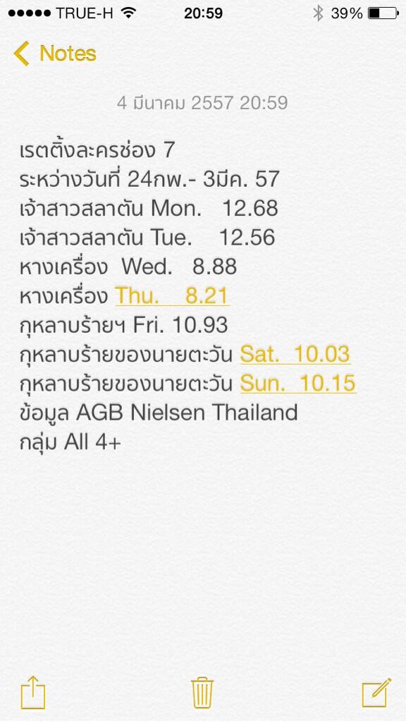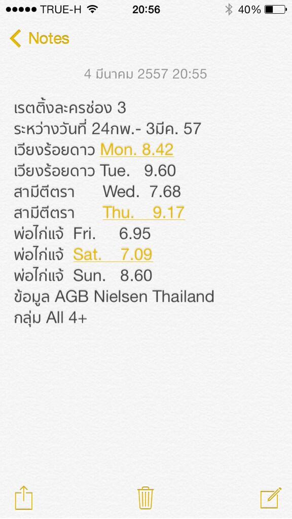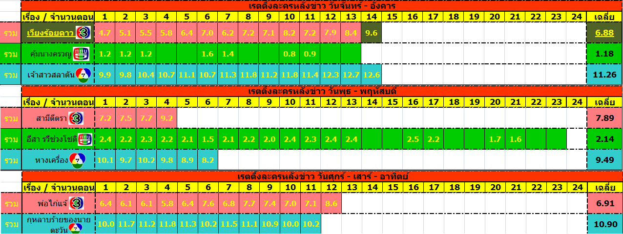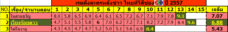มาแล้ว !!! เรตติ้งละครหลังข่าว ช่อง 3 / 5 / 7 ประจำวันที่ 24 กุมภาพันธ์ - 2 มีนาคม 57 + ตารางเรตติ้งละคร