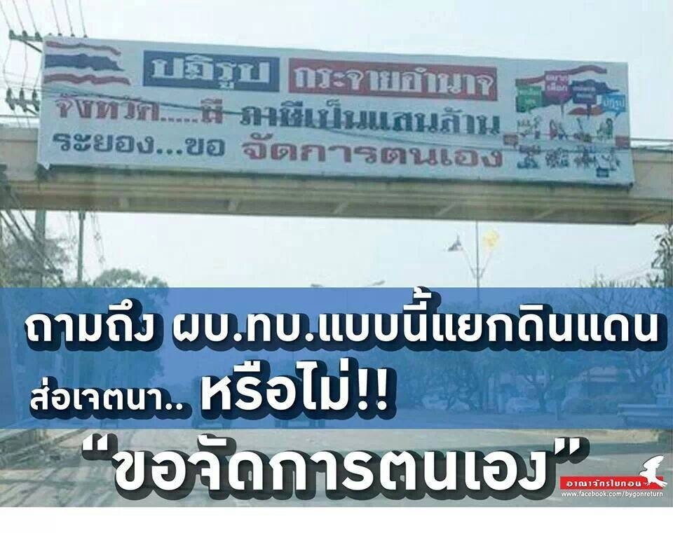 และแล้ว ก็ เกิดป้ายแบบนี้ กลางจังหวัดแห่งนี้ ท่าน ผบ ทบ ช่วยตอบหน่อย แบบนี้ เขาเรียกว่าแบ่งอะไร หรือใจท่านมันถูกแบ่งตั้งแต่แรกแล้วหรือไม่อย่างไร???