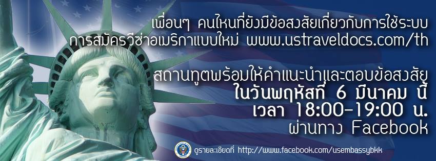 เข้ามาพูดคุยกับเจ้าหน้าที่กงสุลสหรัฐฯ ผ่านทางหน้าเฟซบุ้คของสถานทูตได้