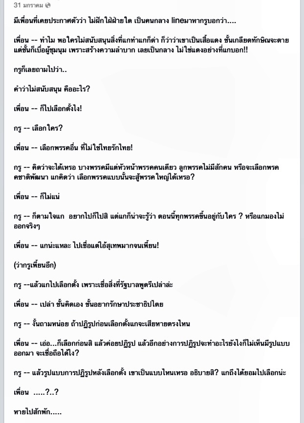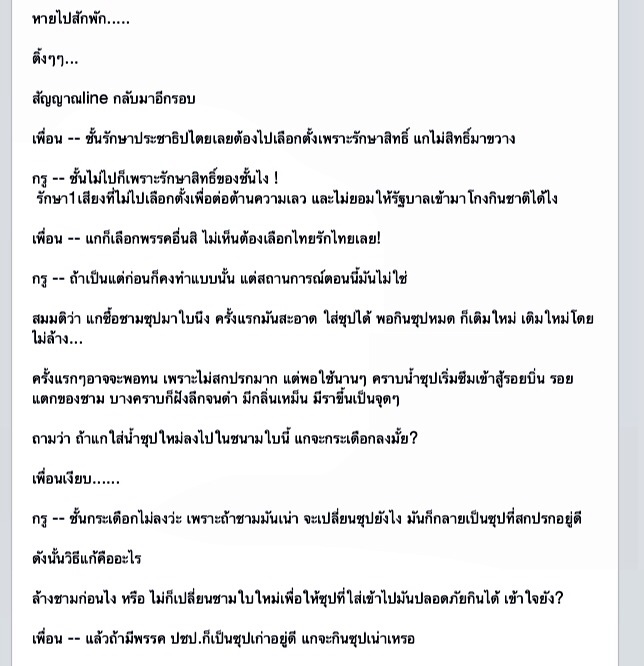 ไปเอามาจากหน้าเฟสสลิ่มท่านหนึ่งที่คุยกับเพื่อนทาง Line เอามาเล่าให้สลิ่มด้วยกันเองฟัง
