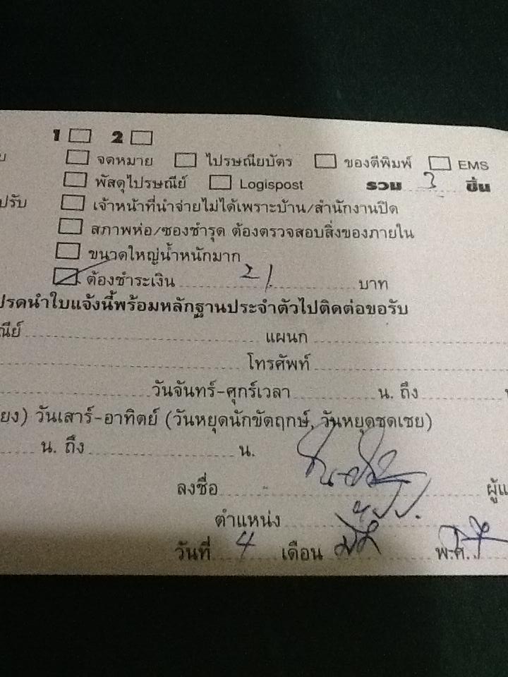 เชร้... ของเข้าหลักสี่ตั้งแต่วันอาทิตย์ วันพุธยังไม่ถึง นี่คืออะไรวะ ปณ.ไทยทำงานกากจริง จะโดนภาษีก็โดนดิ แต่ของช้าเกินกำหนดรับไม่ได้จริงๆ ปล.กากได้โล่