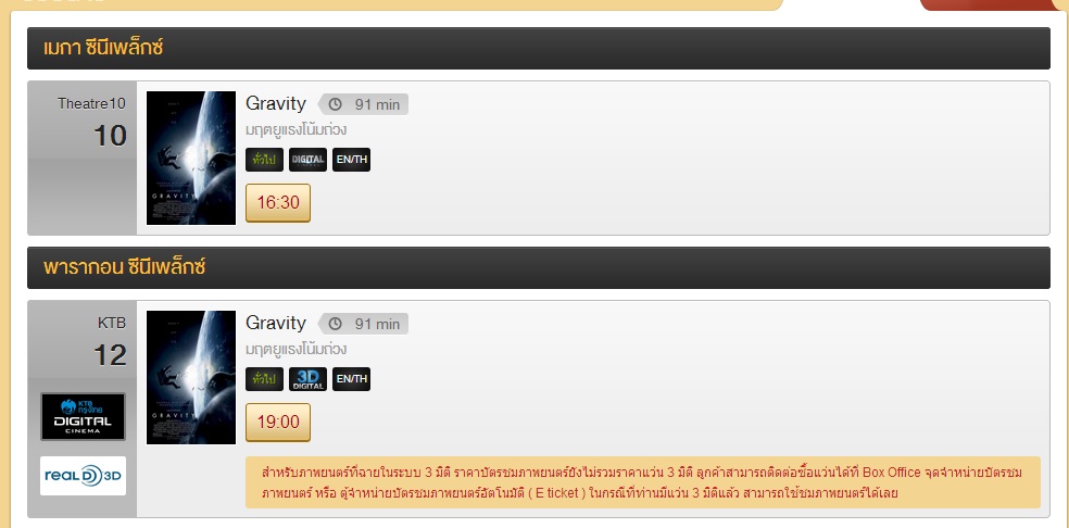 Gravity ยังพอมีรอบฉายในโรงหนัง Major นะครับ แบบ 3D ก็ยังมีอยู่ที่ Paragon ครับ
