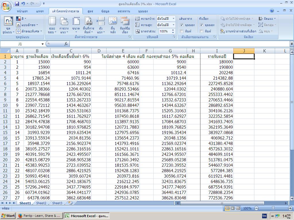 จากรูปนี้คือ เค้าได้งาน และได้รับเงินเดือน 15000 บาท บริษัทมีการขึ้นเงินเดือนขั้นต่ำสุดที่ 6% ต่อปี เค้าอยากทราบว่า ถ้าเค้าทำงานไปเรื่อย ๆ จากการขึ้นเงินเดือนขั้นต่ำที่สุดของบริษัท โดยที่ไม่ได้ปรับตำแหน่งงาน ตำแหน่งเดิมจนถึงก่อนเกษียณ เงินเดือนของเค้าจะได้รับ ที่ 1 แสนนิด ๆ มันเป็นไปได้มั๊ยครับ ที่เค้าจะได้รับเงินเดือนตามขั้นแบบนี้ไปเรื่อย ๆ เพราะว่าจากตำแหน่งที่เค้าทำถ้าบริษัทจ่ายเงินเดือน ระดับ 5 หมื่น ถึงแสน ก็ถือว่าสูงเกินไปมาก ๆ ครับ