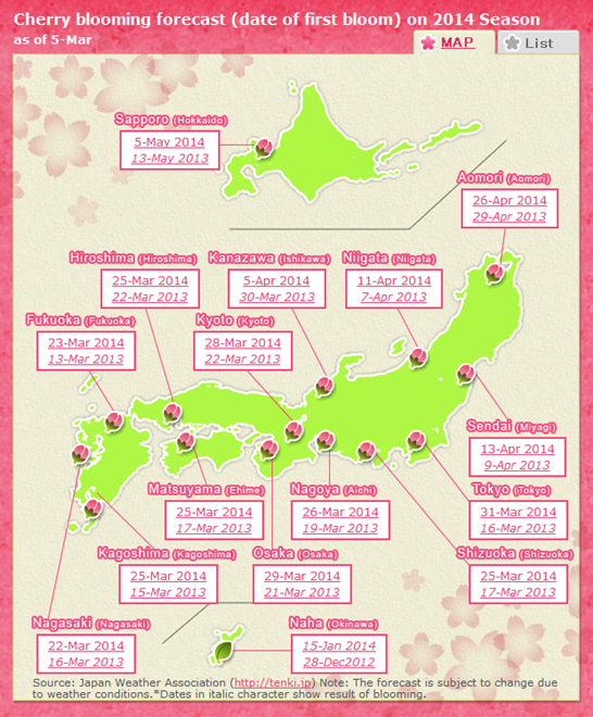 Update ตารางพยากรณ์ซากุระจ้า ! (05/03/2014)