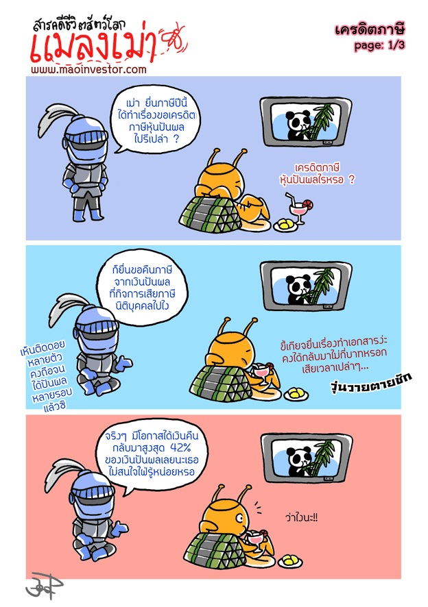 .....เรื่องของเรื่องคือ 1. ผมเอา รายการปันผลในปีทั้งหมด (ทั้งได้เครดิต และไม่ได้เครดิต) มาคำนวนเพื่อขอคืนภาษี แต่มันติดลบ... ให้จ่ายภาษีเพิ่ม... 2. แต่ผมลองเอารายการปันผลเฉพาะที่ได้เครดิต มาคำนวณ แ
