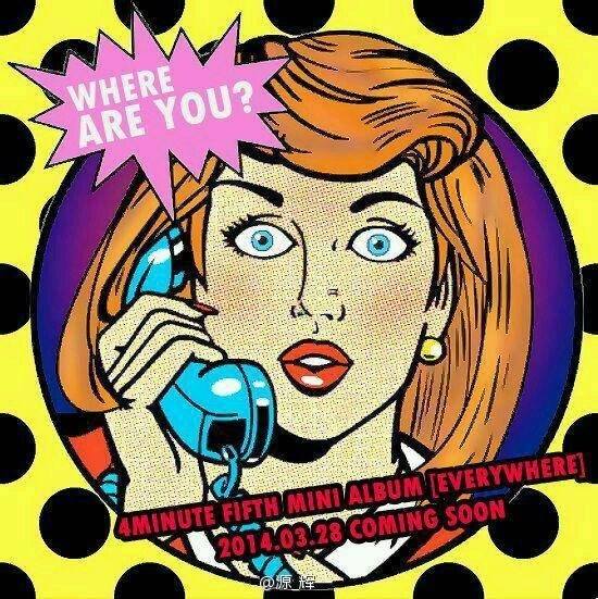 นี่คือรูปแรกที่ทาง คิวบ์ สปอยเกี่ยวกับมินิอัลบั้มของ 4minute ออกมาในวันนี้ ซึ่งเป็นมินิอัลบั้มที่ 5 ที่เดาชื่ออัลบั้มว่า "Everywhere" ซึ่งเพลงไตเติ้ลของอัลบั้มนี้มาในแนวคำถามอีกเช่นเคย