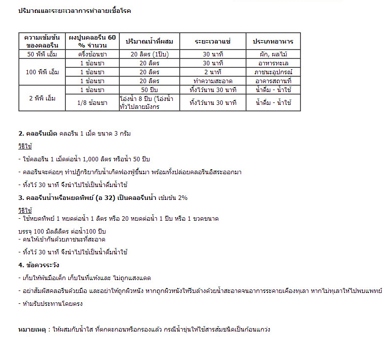 จากการสืบหาอัตตราการผสมคลอรีน ทำให้ทราบว่า น้ำ250ลิตร ควรใส่คลอรีนแค่1กรัม (1000ลิตร ต่อ3กรัมหรือ1ช้อนชา)