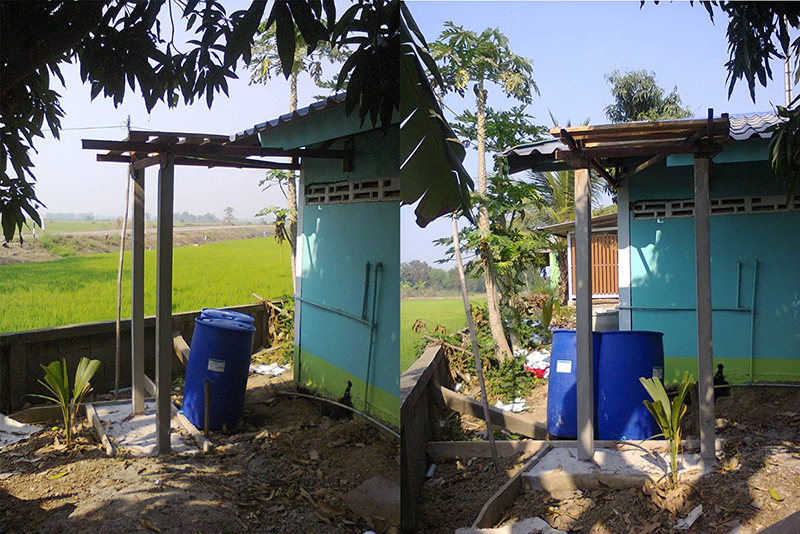 ยกเสาตั้งไว้สูงๆ มันจะได้มีแรงดันน้ำลงมาใช้งานได้