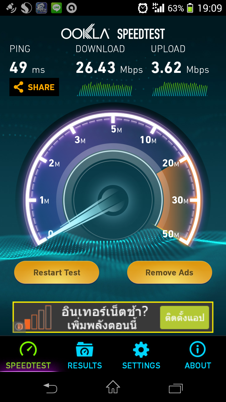ก่อนหน้านี้ตอนที่บ้านผมยังไม่มี 2.1GHz ผมไม่เคย Speedtest ได้เกิน 2Mbps เลยครับ