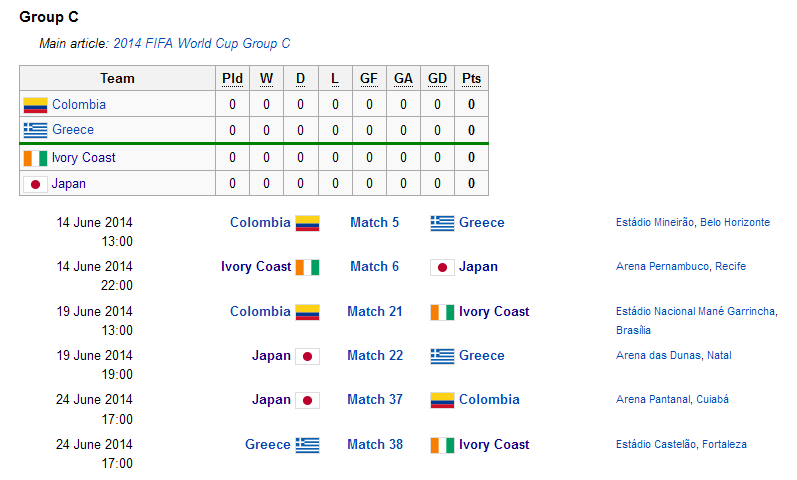 [World Cup 2014] แนะนำทีมชาติต่างๆในฟุตบอลโลก #1 :: Group C :: Colombia,Greece,Ivory Coast,Japan