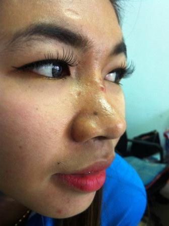 พอดีเพื่อนไปทำจมูกมาแล้วอาการเริ่มแรกคือเป็นเหมือนสิวเม็ดใหญ่ๆๆ ไปปรึกษาหมอหมอแนะนำให้ถอดเราก็ถอดตามที่หมอบอก นี่ก็ผ่านไปหนึ่งเดือนแล้วแต่แผลที่เป็นเหมือนสิวไม่หายซักที ช้ำๆเป็นหนองไม่รู้ว่าเกิดจากอะไร เลยอยากรู้ว่าจะมีวิธีรักษาหรือไม่ ตามรูปเลยนะคะ