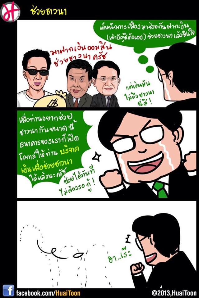 ทำไมไม่เห็นหัวพวกแกนนำเสื้อแดง ไปบริจาคเงินให้ ธกส ช่วยชาวนาบ้างเลยครับ