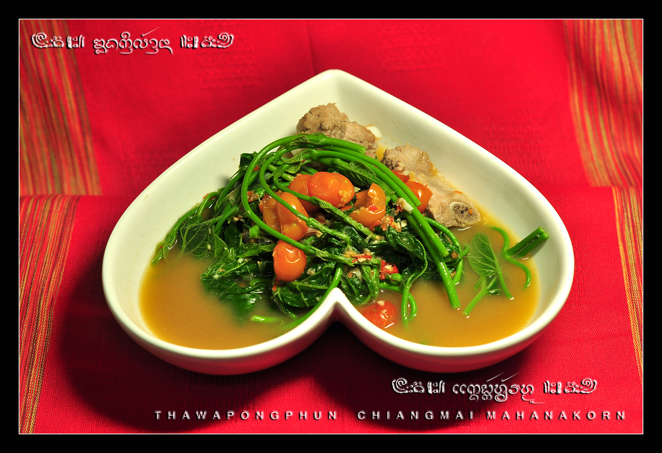 วันนี้อันใดค็จั๋บ ผักฮ้วนค็ป่ง บ่ะเขือส้มค็สุก ดูกหมูค็มี