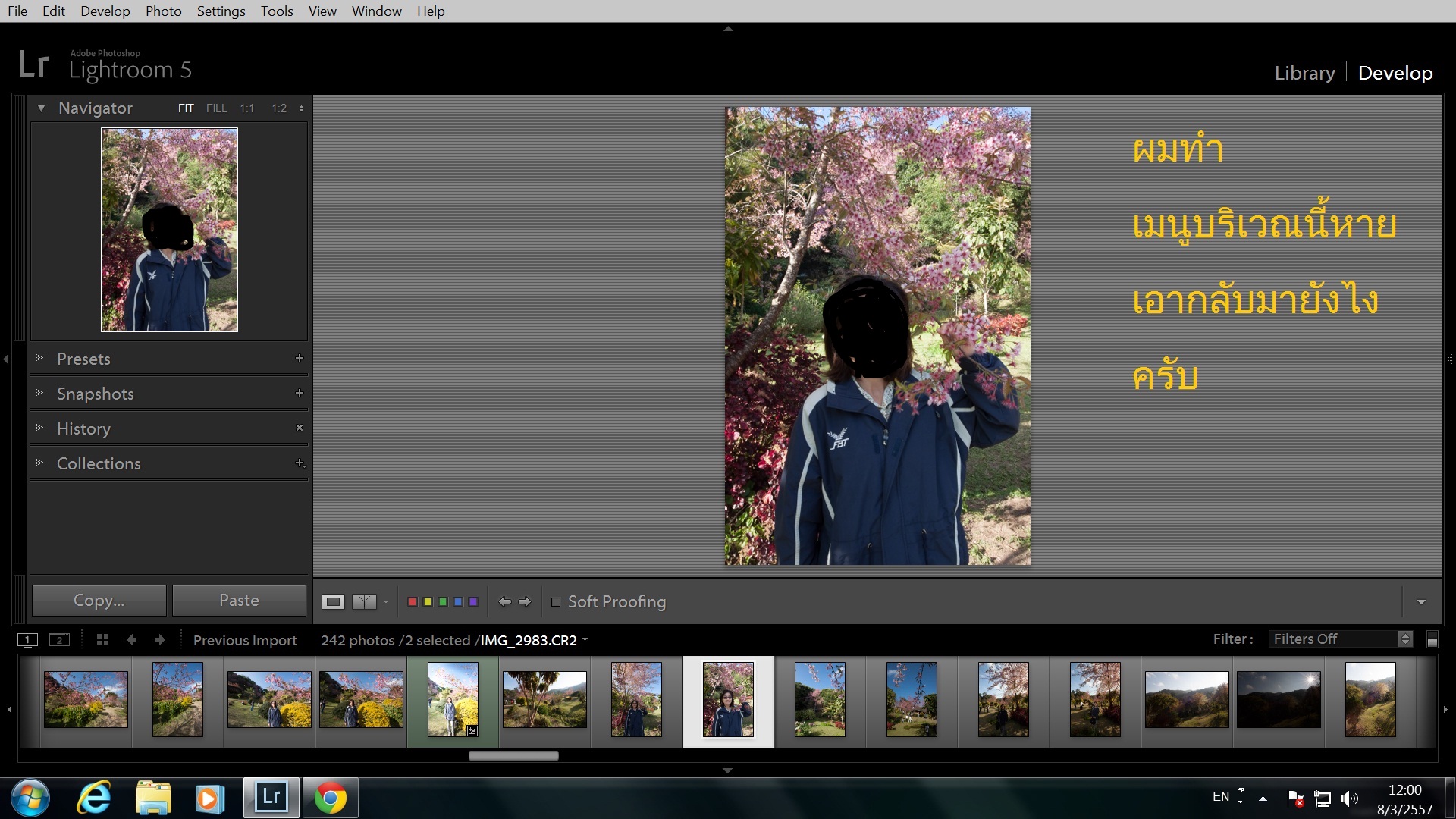 ุถามเซียน lightroom5 หน่อยครับ ผมทำเมนูหาย เอากลับมายังไงครับ