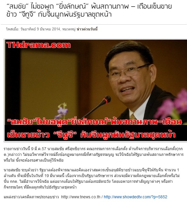 ‘สมชัย’เปิดบันทึก‘รัฐบาลยิ่งลักษณ์’ขอกกต.เอาเงินจ่ายชาวนา-ทำโครงการ‘จีทูจี’ ‘สมชัย’เปิดบันทึก‘รัฐบาลยิ่งลักษณ์’ขอกกต.เอาเงินจ่ายชาวนา-ทำโ