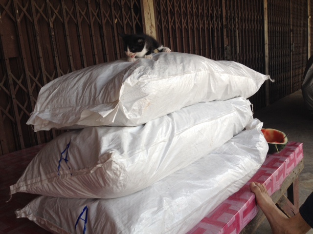วันที่ 22/2/2557 ออย ไปรับอาหารที่ได้รับบริจาค จากโครงการรักษ์แมว 20 กก. จำนวน 3 กระสอบ
