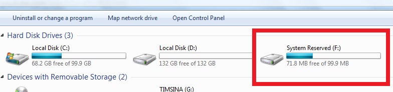 windows 7 แสดง drives ของไฟล์ system ของเครื่อง ปกติมันไม่โชว์ ทำไงดีค่ะ อยากเอาออกหรือต้องลงใหม่