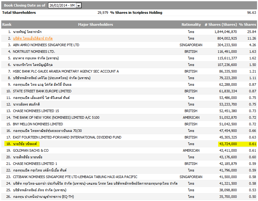 ปิดสมุดฯ 26/2/57 เสี่ยยักษ์ถือ JAS 43.7 ล้านหุ้น .61%