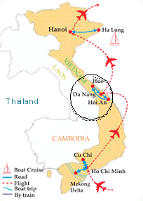 การเดินทางก็ไม่ยากอย่างที่คิดค่ะ แต่อาจจะใช้เวลานานสักหน่อย เนื่องจากเราเดินทางโดยรถทัวร์แทนการนั่งเครื่องบิน เพราะการนั่งรถทัวร์มีราคาถูกกว่าและยังได้ชมทิวทัศน์ระหว่างทางไปด้วยถึงสามประเทศนั่นคือ ประเทศไทย ประเทศลาว และประเทศเวียดนามค่ะ เส้นทางที่เราเลือกไปคือ เดินทางไปยังจังหวัดมุกดาหารเข้าสู่ประเทศลาวที่จังหวัดสะหวันเขต และต่อไปยังเมืองเว้ประเทศเวียดนาม รวมระยะเวลาจากกรุงเทพฯ ถึงเวียดนาม บนรถทัวร์ประมาณ 23 ชม.ค่ะ (นั่งกันจนเมื่อยขากันเลยค่ะ) แนะนำให้ผู้ที่สุขภาพร่างกายไม่แข็งแรง หรือมีผู้สูงอายุมาด้วยหยุดพักที่จังหวัดสะหวันเขต ประเทศลาวสักหนึ่งคืนก่อนแล้วค่อยเดินทางต่อ หรืออีกวิธีคือ เปลี่ยนโดยการนั่งเครื่องบินแทนรถทัวร์จะดีกว่าค่ะ