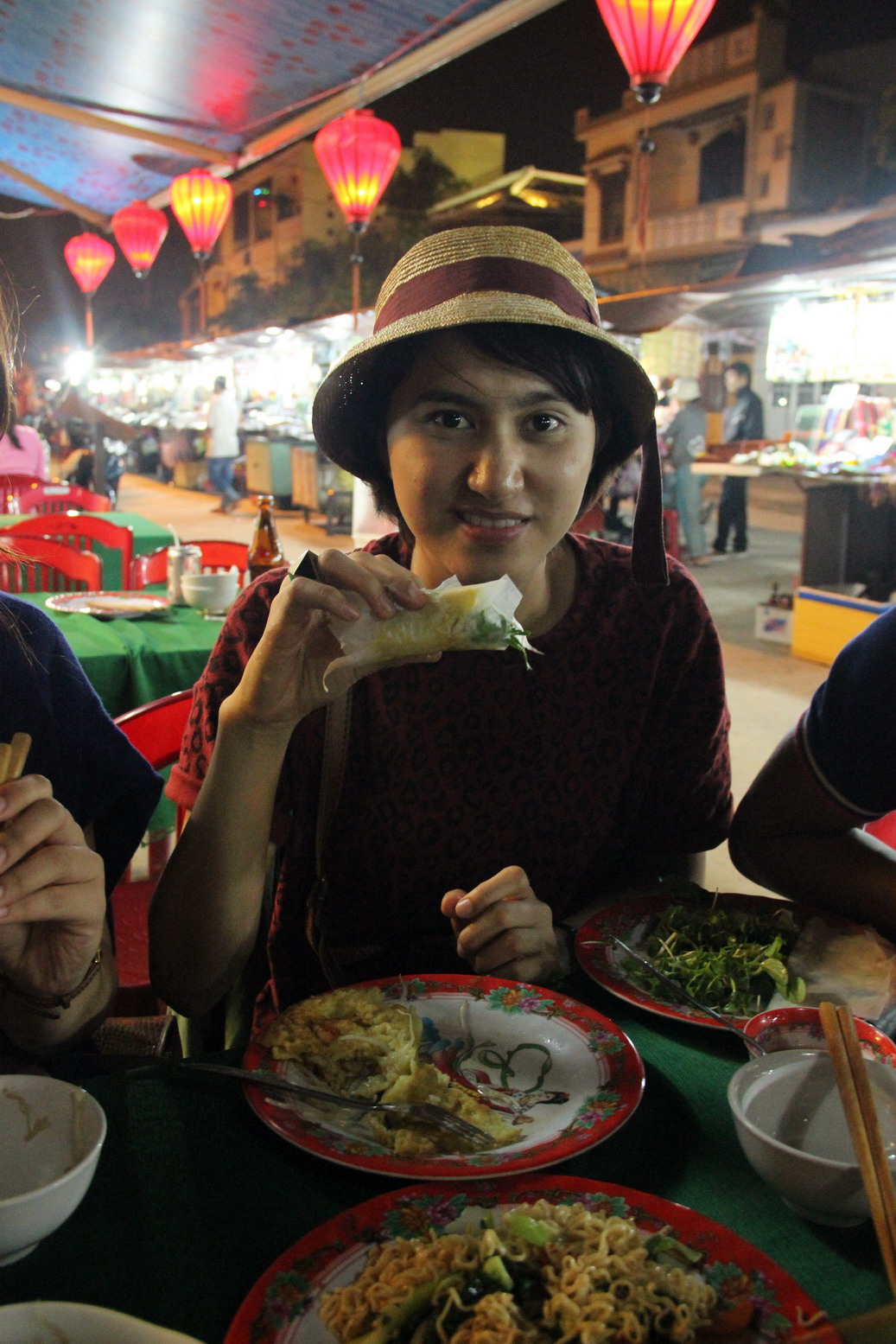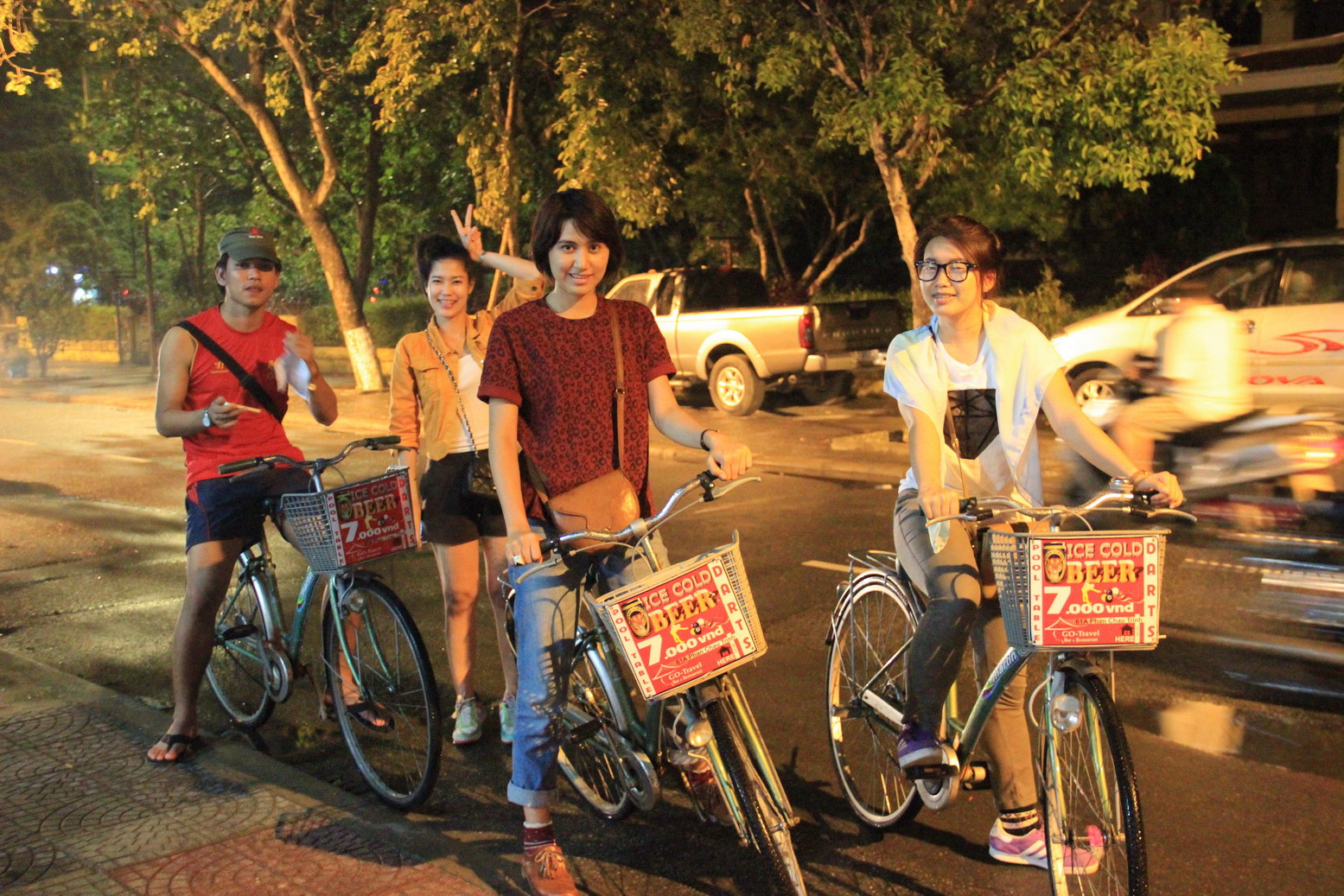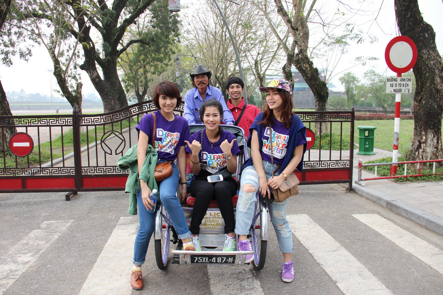 หลังจากนั้นเราปั่นจักรยานต่อไปยัง วัดเทียนมู่(Tien Mu) วัดแห่งนี้เป็นศูนย์กลางทางพุทธศาสนานิกายเซน จุดเด่นที่สุดของวัดแห่งนี้คือ เจดีย์ทรงเก๋ง 8 เหลี่ยมสูงลดหลั่นกัน 7 ชั้น แต่ละชั้นเป็นตัวแทนของชาติภพต่างๆของพระพุทธเจ้า ที่นี่เราได้พบกับรุ่นน้องนักศึกษาจากมหาวิทยาลัยเว้ด้วยค่ะ น้องทุกคนน่ารักและเป็นกันเองมาก ตกเย็นเราก็ปั่นจักรยานแวะหาร้านอาหารทานกัน เมนูเย็นวันนั้นเรียกว่า เฝอ คือก๋วยเตี๋ยวเวียดนามแต่น้ำซุปจะใสกว่าบ้านเราส่วนรสชาติอร่อยกลมกล่อมดีค่ะ