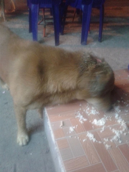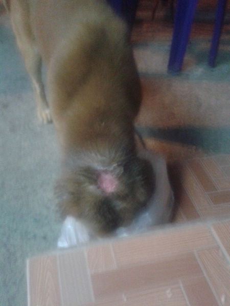 แต่น้องหมาไม่มีท่าทีว่าเจ็บปวดนะคะ วิ่งไปเที่ยวเห่าหมาอีกหลายตัวเลยคะ