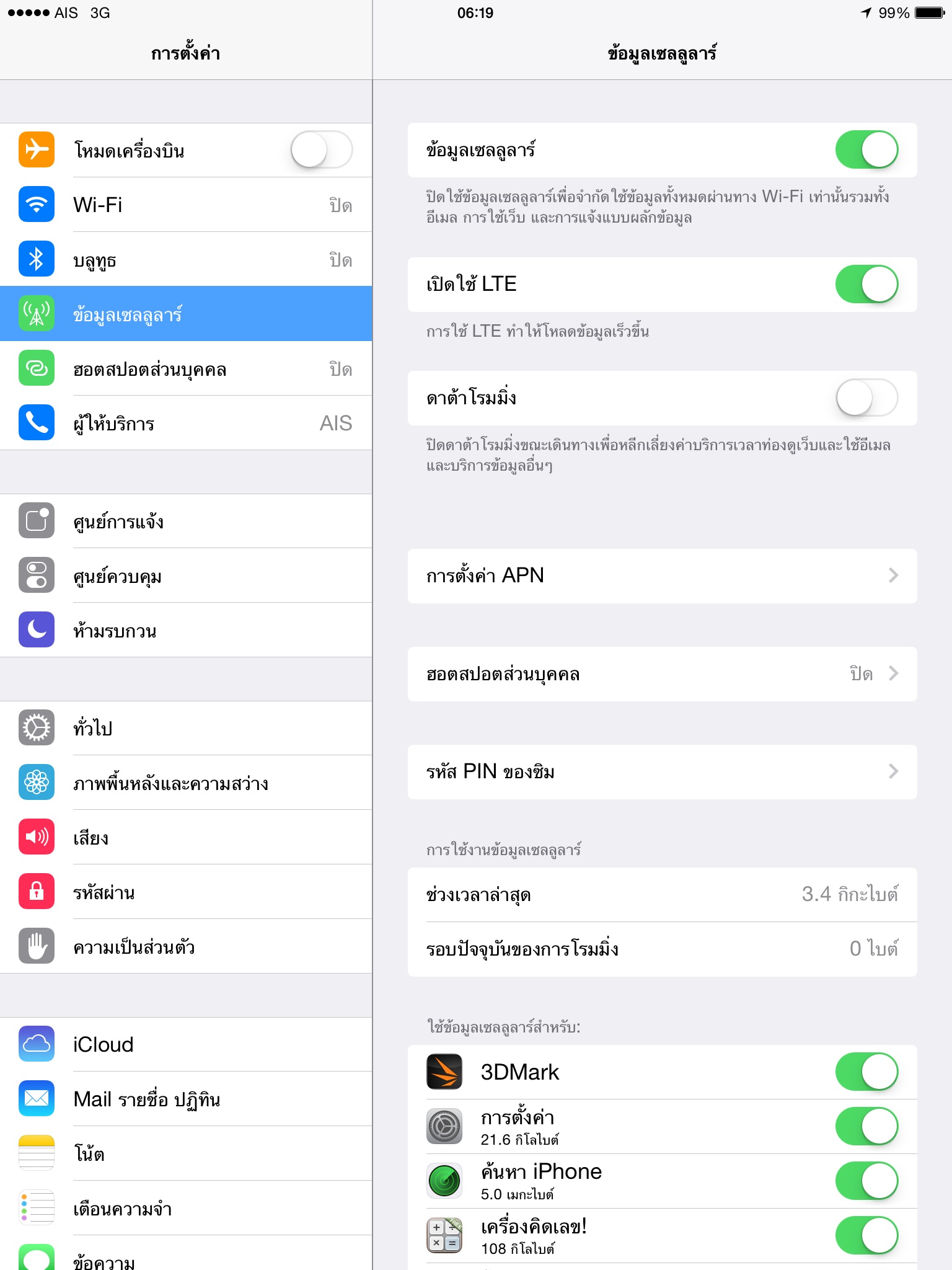 iOS 7.1 มาพร้อมปุ่ม "Enable LTE" ในเครือข่าย AIS สำหรับ iPad ที่รองรับ 4G LTE เท่านั้น