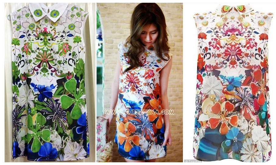 new cop zara dress เดรส print โทนฟ้า ลายดอกทรงเข้ารูป สีสดลายชัด มีซับใน อก 34 เอว 26-30 สะโพก 36-37 ยาว 33 นิ้ว