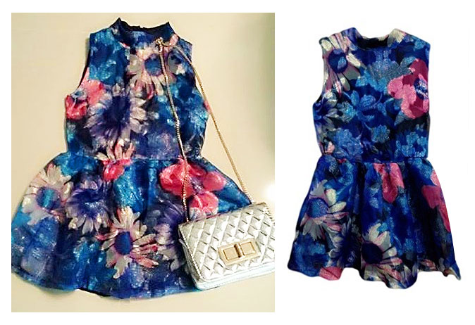 new เดรสผ้าแก้วทั้งตัว ลายดอกไม้โทนฟ้า-น้ำเงิน แบบเดียวกับคุณชมพู่ใส่ค่ะ ราคาปรกติเกือบพัน อก 34 เอว 28 สะโพกฟรี ยาว 30 นิ้ว