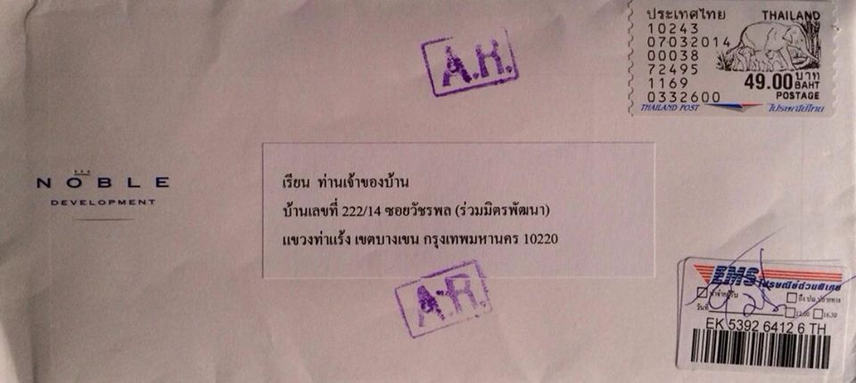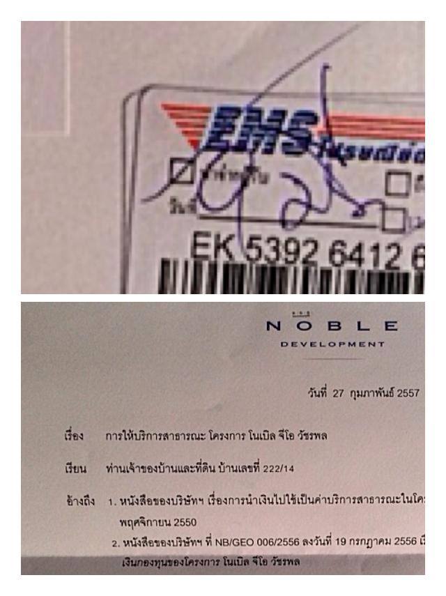 - ล่าสุด Noble ออกจดหมายแจ้งเตือน จะไม่ดูแลแล้ว ส่ง EMS ลงวันที่ 9 มีนาคม 2557 แต่...ลงวันที่ในหัวจดหมาย 27 กุมภาพันธ์ 2557 ???