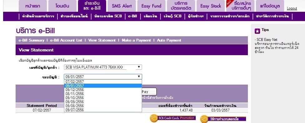 ผมเพิ่งเปลี่ยนมารับ statement บัตรเครดิต ทาง e-mail เพราะดูใน scbeasy มีปัญหา พอคลิ๊กเปิดดู statement จะหลุดออกมาแล้วแจ้งประมาณว่า ท่านไม่ได้ทำการเกินเวลา ผมเลยเปลี่ยนมารับทาง e-mail แต่เดือนแรกก็มีปั
