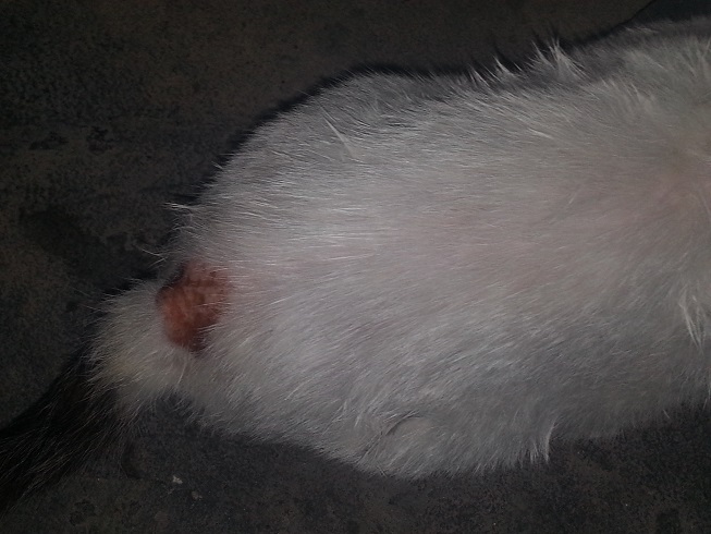 ลูกแมวที่เราเลี้ยงอายุ 3 เดือน โดนแมวจรตัวผู้กัดแถวบริเวณคอ กับขาหน้าข้างขวา ตอนมาเจอน้องนอนชักอยู่ เลยพยายามเรียกเขย่าตัวน้องให้กลับมา พอน้องหายชักก็พบว่าแขนขาน้องจะเดินไม่ได้ โดยเฉพาะขาหน้าข้างขวาไม