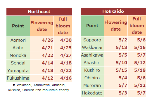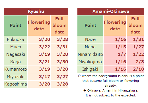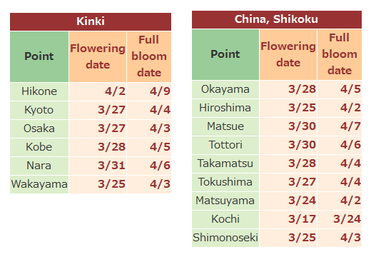(จากรูปแรก) ที่ Fukuoka จะบานเร็วขึ้นหนึ่งวัน นอกนั้นไม่เปลี่ยนแปลง
