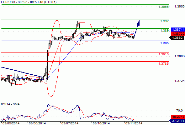 Our preference: Long @ 1.386 with targets @ 1.389 & 1.392 in extension.