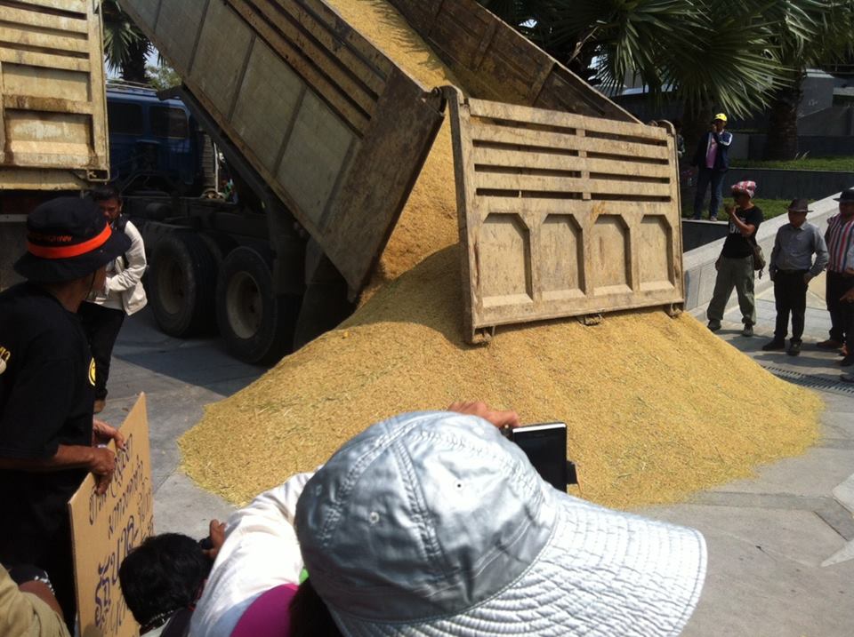 องค์หลวงปู่พุทธะอิสระ และชาวนานำข้าวเปลือก 2 รถบรรทุก มาเทหน้า ธกส.