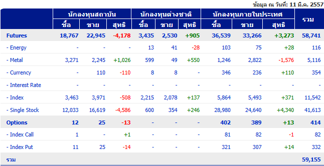 3/3/57 ต่างชาติ Long index future 652 สัญญา