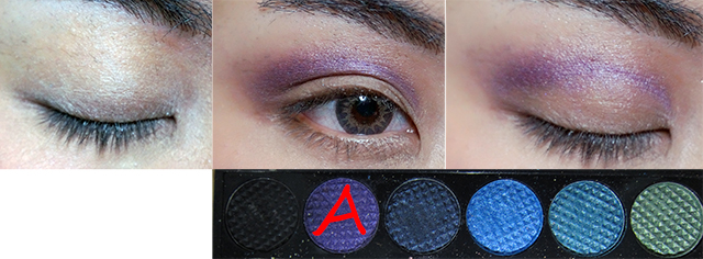 2. สร้างเป้าตาก่อนเลย โดยลงสีม่วงๆ (A) ลงตรงที่เราคัดเบ้านั่นแหละ เบลนขึ้นไปข้างบน แต่อย่าสูงมาก เดี่ยวจะเหมือนโดนฝามีซ้อมมา ไม่ต้องพิถีพิถันมากก็ได้