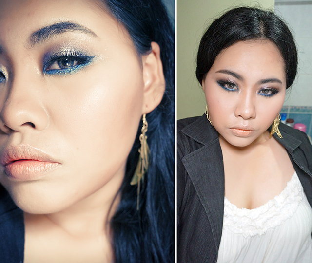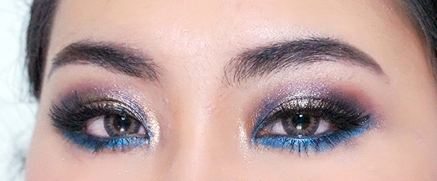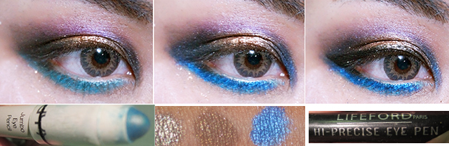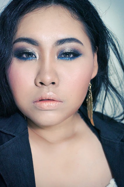 ลงสีน้ำเงินเข้มตรง 1/4 จากหัวตาเข้าไป และ 1/4 จากหางตาเข้าไป เป็นเป็นรุปตัว v ตะแคง เบลนๆ ให้สีๆ ทั้งหลายมันกลืนกัน