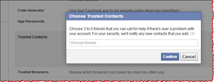 จะมีหัวข้อให้ใส่ชื่อเพื่อน ที่จะช่วยคุณ เวลาคุณพบปัญหาการเข้าใช้งาน Facebook