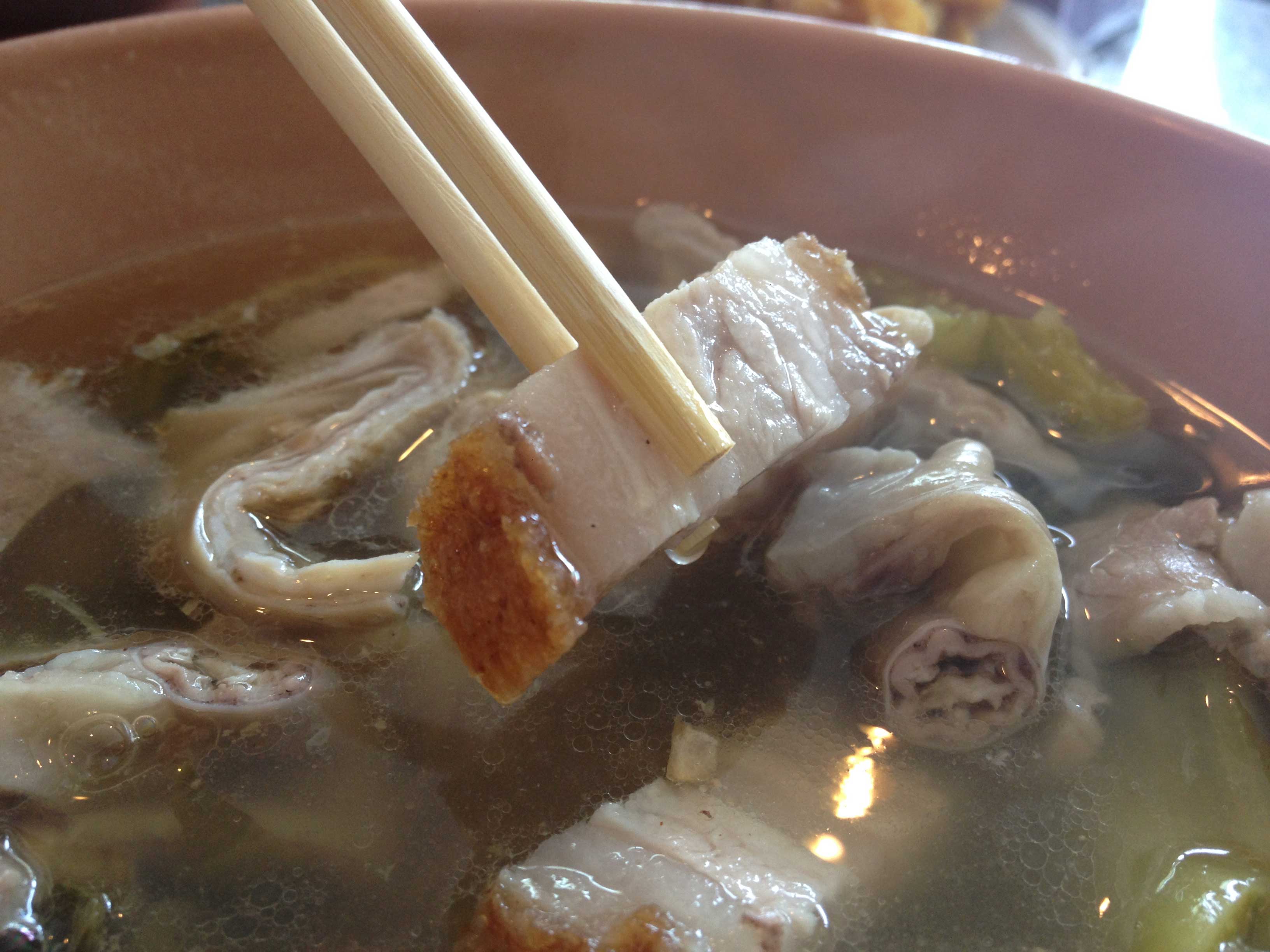 เฮ้ย…มัน…..อร่อยมากครับ!!!! อร่อยจริงๆ ผมชอบเลย ผมไม่กลัวอีกต่อไปแล้ว ตือฮวน ผมหลงรักมันแล้วละ ไม่เหม็น ไม่คาว ผมสั่งหมูกรอบไปด้วย เกี๋ยมฉ่ายทำให้รสชาติ มันกลมกล่อมจริงๆ
