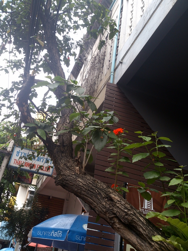 ต้นที่เห็นสูงราวๆ ตึกสองชั้น มีดอกกระจายทั่วต้น